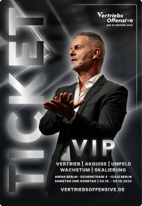 Die Vertriebsoffensive 2025 ist das größte Vertriebsevent Europas. Ein unvergessliches Vertriebs-Seminar von und mit Dirk Kreuter, das in diesem Jahr nur live und vor Ort in Berlin stattfindet: am 04.10. und 05.10.25.